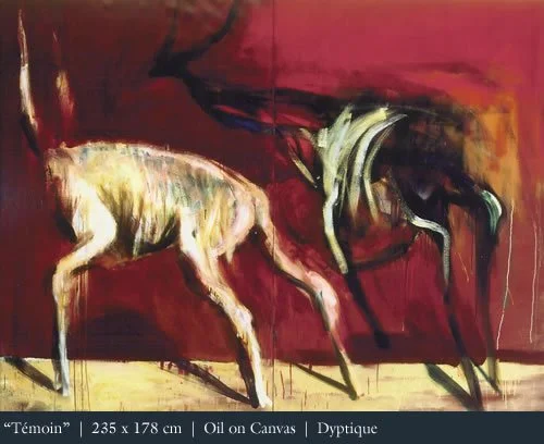 His treatment of the themes varies with his stylistic evolution. The nudes in the 1991 series "The Witnesses" seem to float on the surface of the paintings like ghosts come to haunt a universal conscience. Those of the 1994 series seem to struggle to escape from the heavy environment of thick paint and swirling brush strokes.